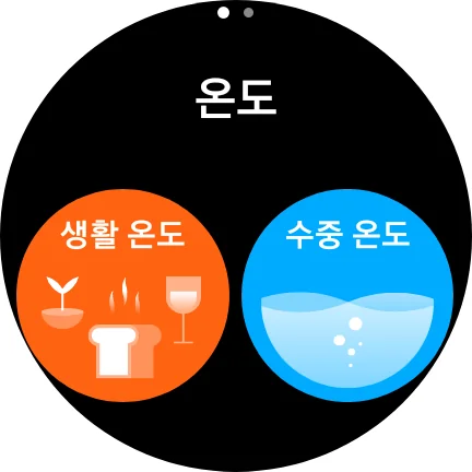 -시계를 착용한 상태로 수중에 들어가면, 5초 간격으로 수중 온도를 측정합니다.