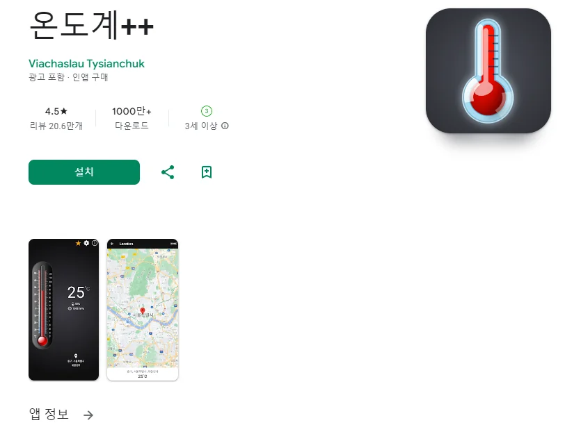 아래는 온도계++ 어플에 대한 스크린샷 정보입니다.