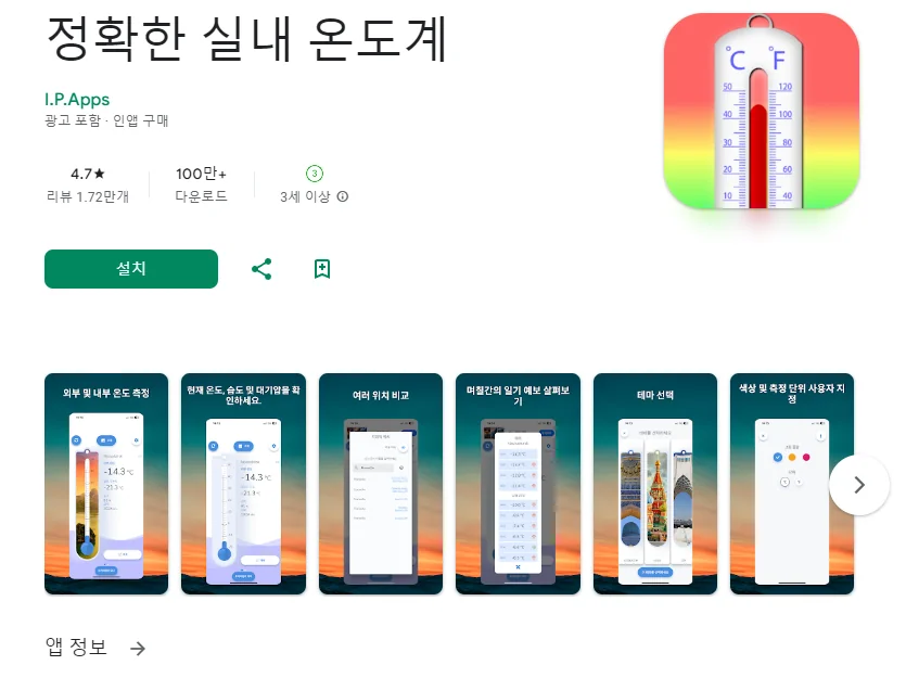 아래는 정확한 실내 온도계 어플에 대한 스크린샷 정보입니다.