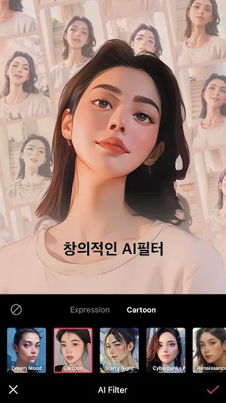 ・ AI 필터: 다양한 스타일의 나만의 캐릭터 만들기