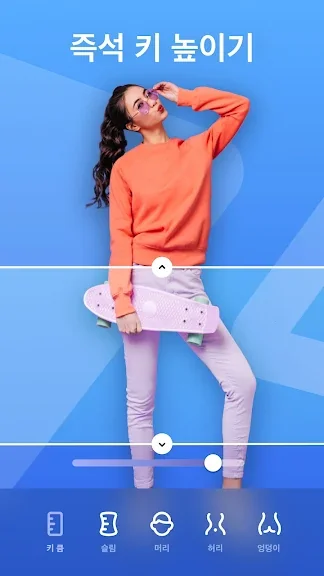 가슴 확대, 힙 업, 얼굴 작게 만들기 및 허리 가늘게 만들기로 몸매를 고쳐보세요. 키 보정 도구로 키를 늘릴 수도 있습니다. 날씬하게 만들기 도구로 몸매를 마르고 날씬하게 만들어보세요.